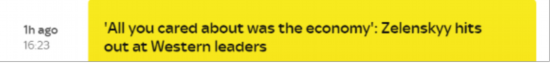 天空新闻台:泽伦斯基猛烈抨击西方领导人,“你们只关心经济”