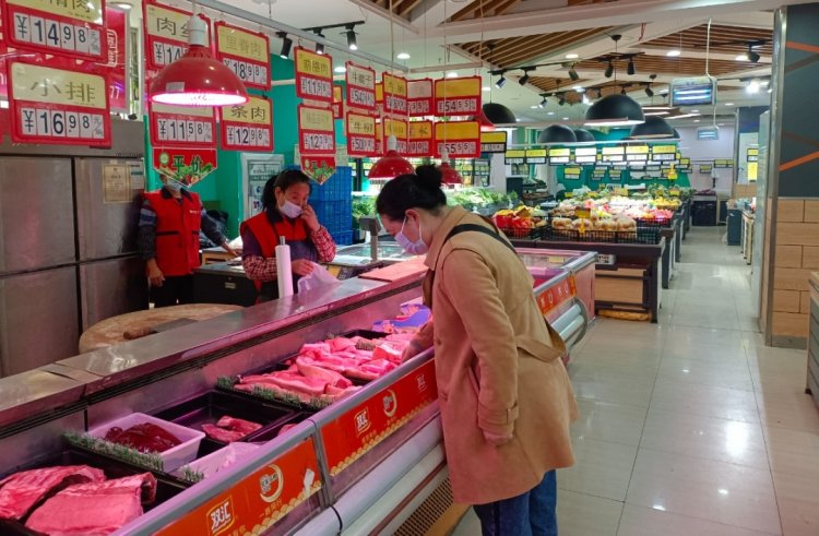3月17日上午9点,记者在信特超市中央花园店看到,肉类和蔬菜区物品满满当当、货源充足,标价牌上都清晰地贴着“平价”的标识,价格比周边菜市场要便宜不少。疫情期间,家门口这家平价超市的农副产品深得广大居民欢迎,聚博花园居民吴茜购买了平价的五花肉、蔬菜、鸡蛋等。“这里确实比菜场便宜,我们常州市政府做得还挺好的,肉类紧张的时候,超市还会供应一批特价肉。”吴茜说。