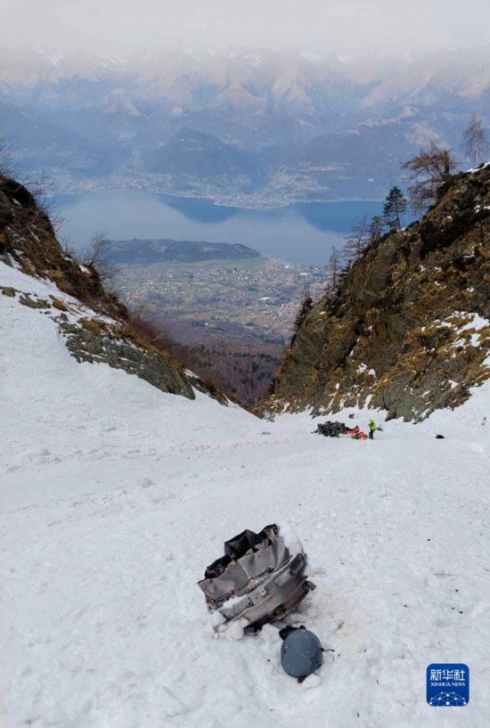 这是3月16日在意大利北部伦巴第大区莱科省拍摄的坠机事故现场。