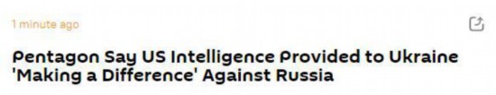 俄罗斯卫星网18日消息,美国防部负责情报和安全事务次长罗纳德·莫尔特里周四(17日)在一场听证会上表示,美国正在向乌克兰提供情报,他称这正在乌克兰对抗俄罗斯的战斗中“发挥作用”。