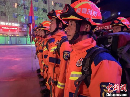 地震发生后,新疆消防救援总队迅速启动应急预案,调动和田地区消防救援支队皮山县消防救援大队出动前突小队2车8人前往震中,并先后调集22车92人2只搜救犬集结待命。救援人员迅速将各类通讯装备、应急宣传器材装备、抢险救援衣物、呼救器、雷达生命探测仪、音频探测仪、机动链锯、轻型安全绳、防坠落装备、液压破拆工具组等携行物资和车辆器材装备检查完毕,随时做好增援准备。