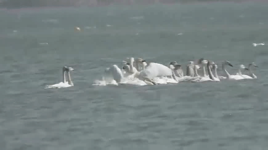 一群北迁的白天鹅