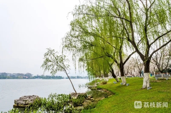 更巧合的是,这株柳树就生长在玄圃的韦庄雕像旁。“江雨霏霏江草齐,六朝如梦鸟空啼。无情最是台城柳,依旧烟笼十里堤。”在韦庄的千年吟咏中,玄武湖以“北湖烟柳”之名走进了金陵四十八景,在韦庄的注视下,一个奇迹又在台城边诞生。