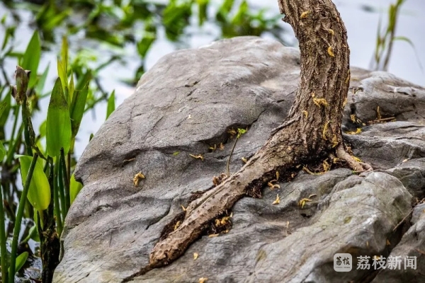 3月18日,有市民在玄武湖畔发现了一株“坚强”的柳树,它在靠近湖岸的一块石头上扎根生长。郑板桥《竹石》诗中“咬定青山不放松,立根原在破岩中。千磨万击还坚劲,任尔东西南北风。”的意境,在这株柳树上得到了体现。