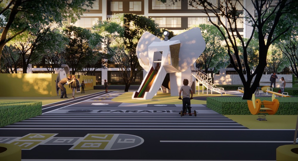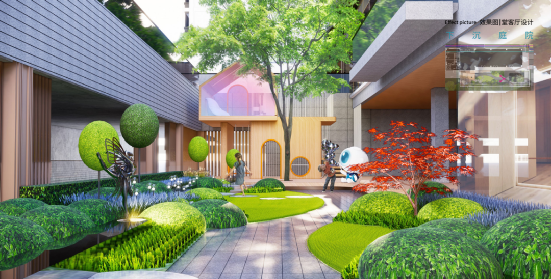 园区景观以“向阳而生,逐光而行”为设计理念,打造“一环一馆两轴六园”十重景观场所。引进金地独家专利的全智慧微气候系统,通过对楼栋、景观、树木的布局来控制小区风向和风速、调节温度和湿度,打造都市花园型社区。