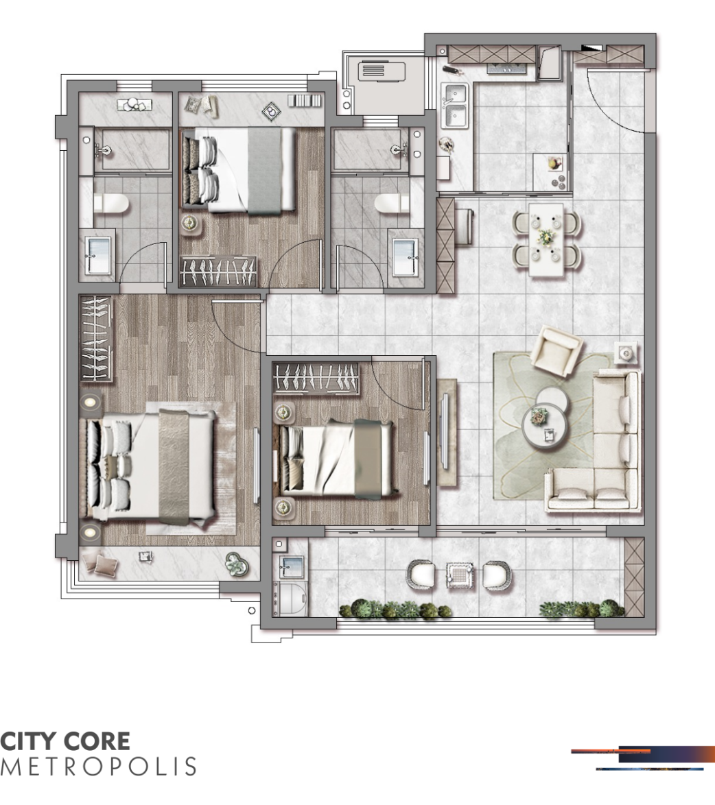 令人向往的生活住区,必有优越的配套加持。都会紫京平移大都会繁华,将丰盛配套拉近至100m内,为土地赋予新的价值。