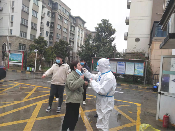 市医保局组织60余名党员干部,来到清江浦区南门社区协助社区开展疫情防控工作。何剑峰/摄