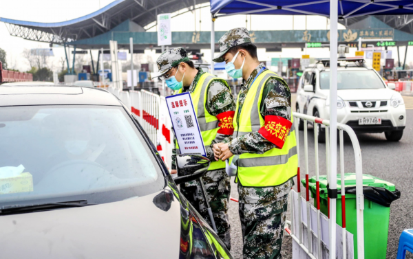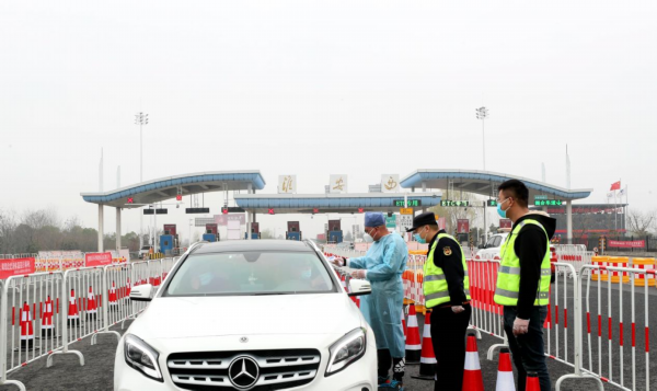 洪泽区交通、公安、卫健等部门志愿者24小时坚守宁淮高速洪泽道口防控一线