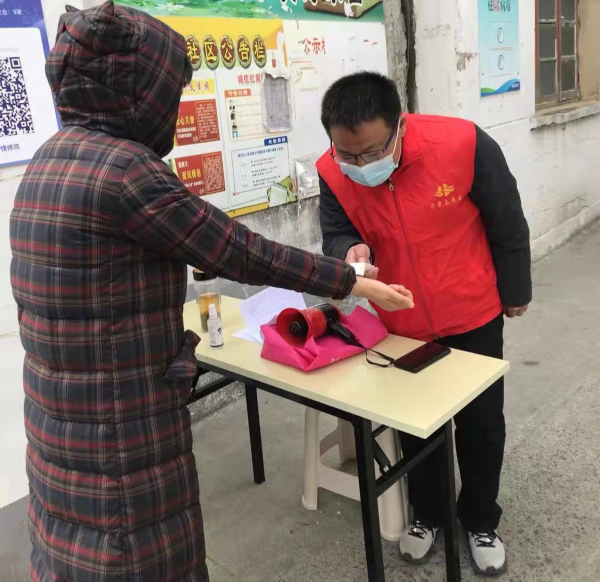 市农业农村局党员走进府前街道京北社区辖内6个无物业管理小区,开展疫情防控志愿服务,为老旧小区守好安全门。秦艳艳/摄