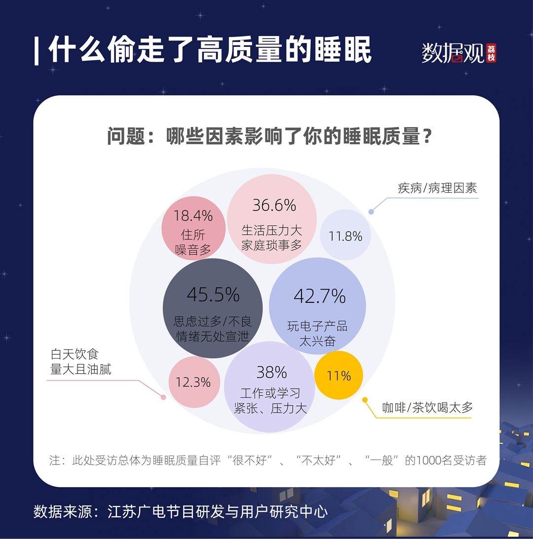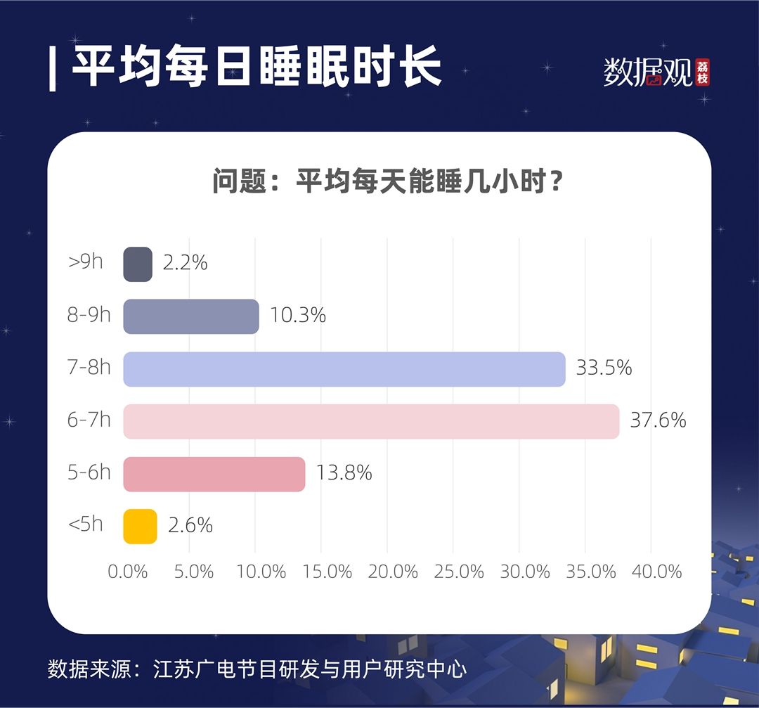 围绕睡眠问题,江苏省广播电视总台节目研发与用户研究中心发布调查报告(如无额外标明,下文“报告”、“调查”、“受访者”等均出自本报告),就睡眠时长、入睡阻碍、午睡状态等日常焦点进行大数据“扫描”。