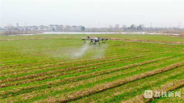 农技专家们则把田间地头当作舞台,尽情绽放护好“饭碗田”的光彩。在太湖水稻示范园,无人机在麦田上空来回穿梭,播撒拔节孕穗肥。