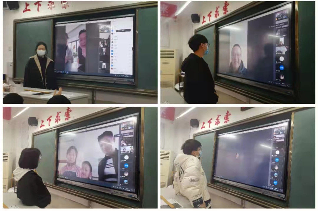 当家人出现在屏幕另一端时,许多同学眼眶湿润。家长们看到了孩子的学习状态,询问孩子的生活情况,与孩子说着心里话,鼓励孩子努力学习;孩子们看到了父母的笑颜和熟悉的家,缓解了对家人的思念,叮嘱家人做好防护。