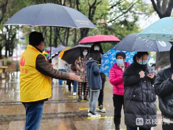 风雨中积极参与核酸检测的市民们,谢谢你们,是你们的配合让江阴更加温暖。
