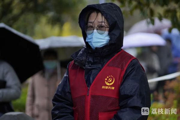 申港街道居民吴丽珍说:“我们3月19日做了第一轮核酸检测,3月20日又来做第二轮。我们看到工作人员、志愿者在这风雨中很不容易,我们一定积极配合好他们的工作。”