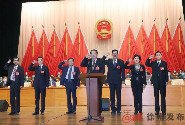 今天,大会选举产生了新一届市政府领导班子,选举我担任徐州市人民政府市长。我将倍加珍惜机遇、倍加担当作为,团结带领市政府一班人,在市委的坚强领导下,坚决扛起习近平总书记赋予的“争当表率、争做示范、走在前列”光荣使命,继往开来、接续奋斗,在新征程上创造新的更大业绩,向全市一千多万人民群众交上一份满意答卷。