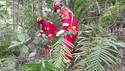 率先到达的消防救援人员,在山林中找到了飞机残骸碎片。