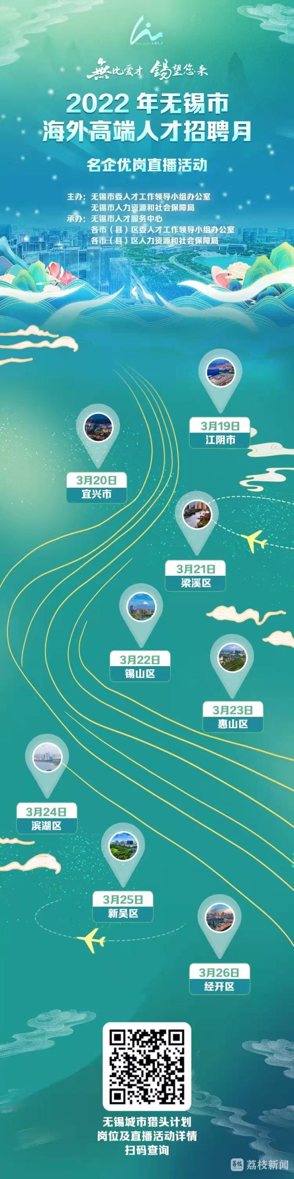 我苏网讯 3月19日,为期8天的城市猎头计划岗位及直播活动启动,这是2022年无锡市海外高端人才招聘月活动之一。本次招聘月将设立岗位网络发布平台,开展海外高端人才网络招聘会、线下高端人才寻访、名企优岗直播招聘活动及人才政策宣传活动。
