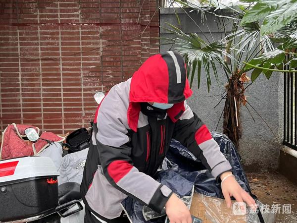 根据南京市发布的疫情防控工作需要,目前南京市小区实施封闭管理,快递小哥不得进入小区,实行无接触配送,在小区出入指定区域中转存取。因为这次派送的地点没有在门口放置柜台,雨天地面满是泥泞,在连续打了几个电话后,江豪开始了默默地等待。
