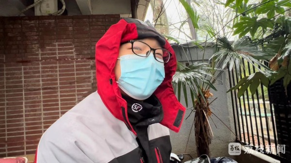因为雨中气温较低,紧戴口罩的江豪眼镜上有了些雨水和雾气,他把眼镜取下来擦了擦告诉记者,现在大家对快递员的工作更多的是理解,所以自己并不觉得工作时很冷。
