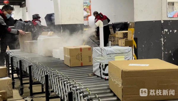 下午两点半,完成了快件分拣的江豪将已经在皮带机上进行过一轮消杀的快递装上了自己的电动车,在正式出发派送前,还会有专人对这辆电动车和所载快件再进行一次消杀。