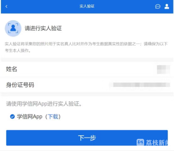考生首次登录系统,或每次进入考场之前均需使用“学信网App”进行实人验证。