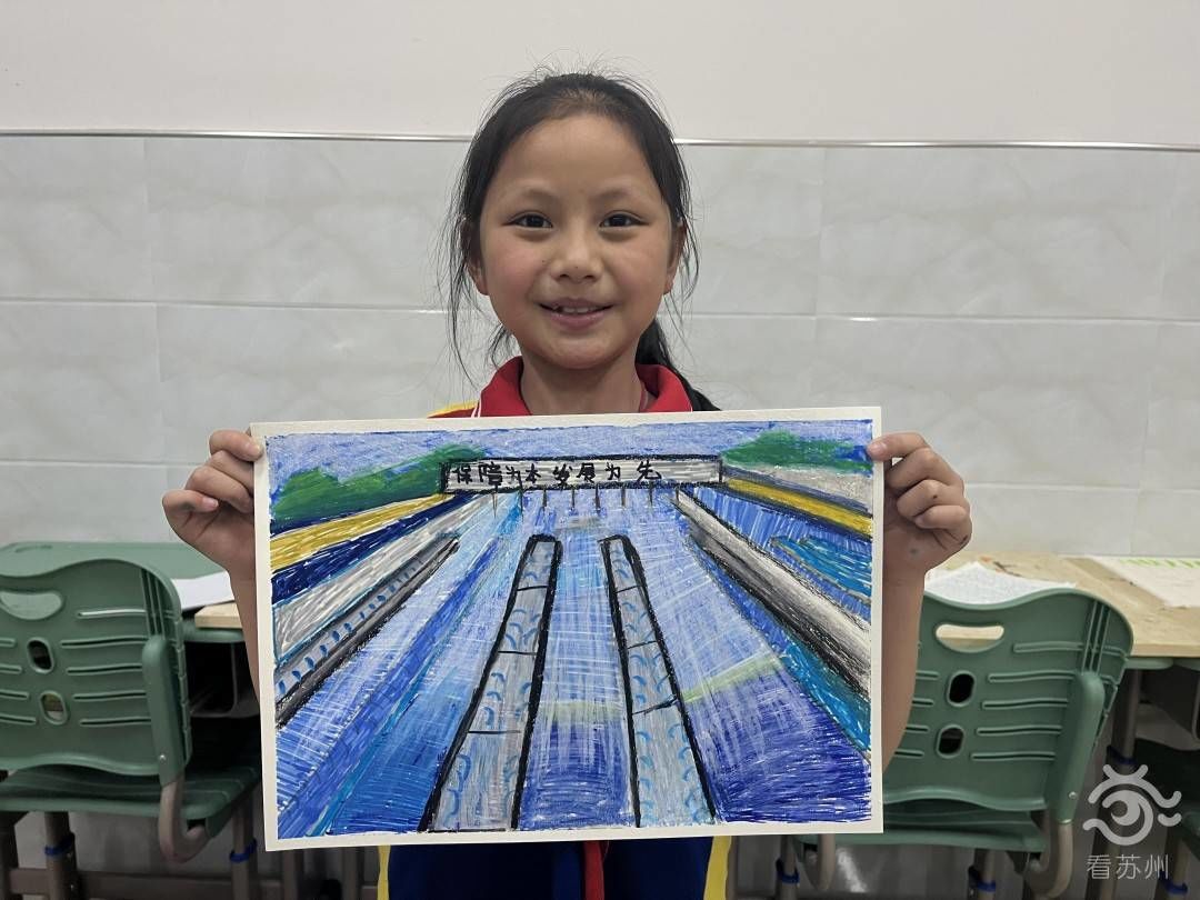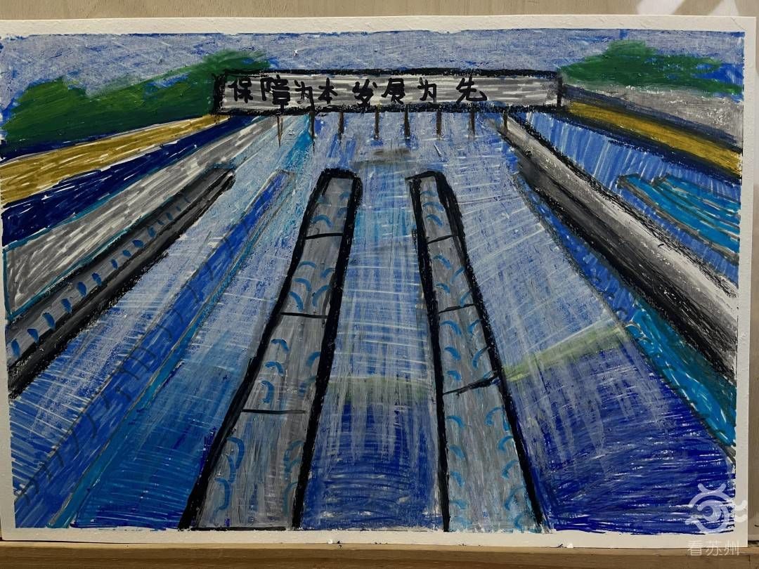 “苏州的水是甜的!因为苏州的爱,我们的生活也是甜的!”龙佳妮说,参观相城水厂让她知道水并不是“自来”,而是经过一道道工艺后才能饮用。她印象最深的就是水厂过滤池的清水,所以就用画笔画下了这一汪清水,告诉大家每一滴水都来之不易,要珍惜水、爱护水。