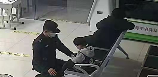 民警见状立即俯下身子半蹲在小男孩身边进行询问,可由于孩子年纪太小,口语表述不清楚,无法了解到具体的信息。为了安抚孩子的情绪,民警便领着孩子去超市购买了些零食,试图平稳孩子的情绪,买完零食回所的路上,一名热心群众认出这名小男孩,随即由群众通知孩子的母亲来所将其接回。