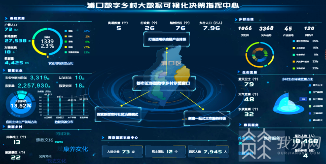 据了解,浦口数字乡村大数据决策指挥中心分为7大板块,包含基础资源、智慧农业、乡村治理、惠民服务、生态宜居、美丽乡村及南京国家农创中心概览等,对浦口区的涉农板块内容进行一屏统览。