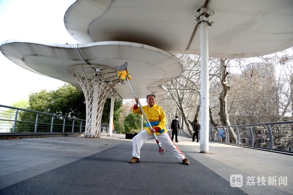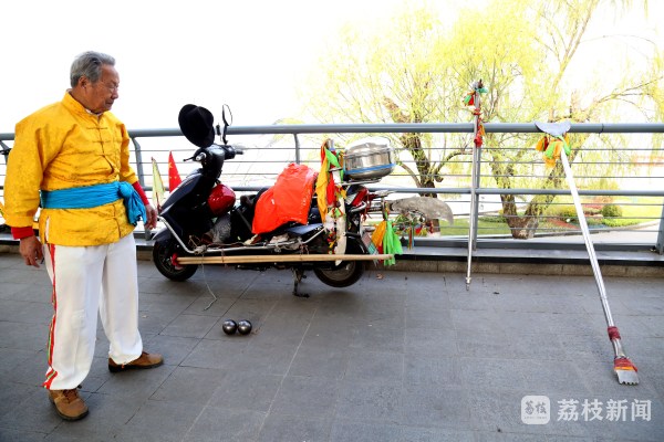 在南京下关滨江外滩上,每天早上都能看到一位老人骑着电动车带着“十八般”兵器来锻炼。在这些兵器中还有难得一见的月牙铲、双锤、双枪等稀有兵器。
