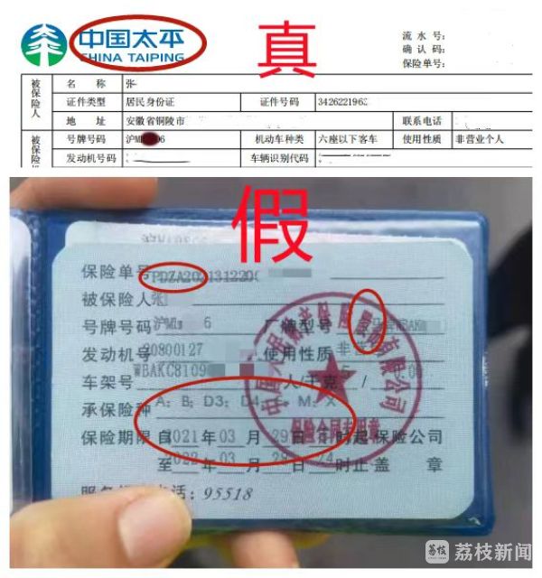 虽然被查获的当事人辩称,这辆车是从他人处抵债而获得,但是民警通过车牌水印、行驶证盖章、车保卡内容显示等多处查看,都发现了伪造的痕迹。