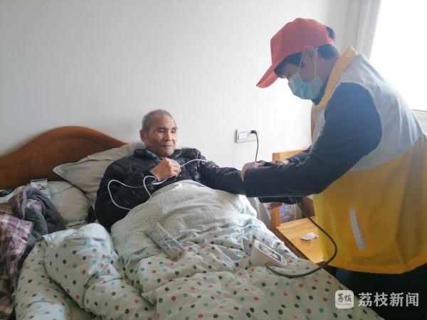 独居老人徐法华今年79岁,退休以前的工作环境导致肺不好,呼吸依靠氧气机,不便出门,站点护理员会定期上门给他测血糖血压,为其打扫卫生,陪他拉家常,让独居老人心里倍感温暖。