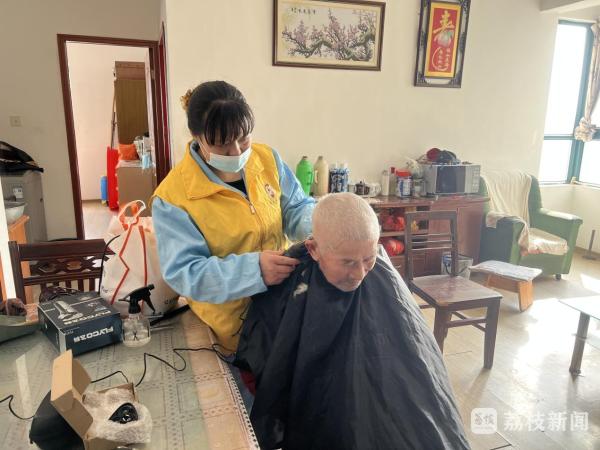 除做好日常工作外,高龄空巢老人这一特殊群体的生活起居和身体状况牵动润乐站点的心。看着刘爷爷的头发一天天渐长,站点社工小张主动联系到精通理发的志愿者来到老人家中,为老人理发。当天下午,徐艳拿出推子、剃刀、梳子等工具,一展“理发师”手艺。她说:“疫情期间,尤其是老人不便外出理发,我之前开过理发店,今天我的手艺又派上用场了。”