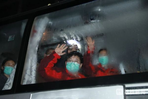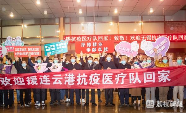 3月21日19点47分,无锡驰援连云港抗疫工作的105名医务人员圆满完成任务,平安返回无锡。来自无锡各界的干部群众在风雨中守候迎接医疗队员凯旋,队员们的家人、同事早早带着鲜花、标语,等待着英雄们的归来。