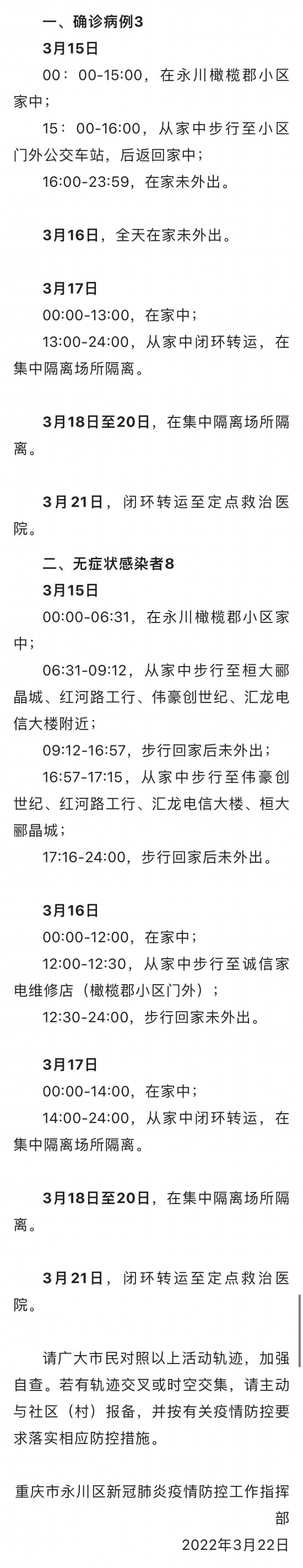 重庆市公布永川区1例新冠肺炎确诊病例(轻型)和1例无症状感染者,此二人系重庆市卫生健康委公布的永川区无症状感染者3的密切接触者。