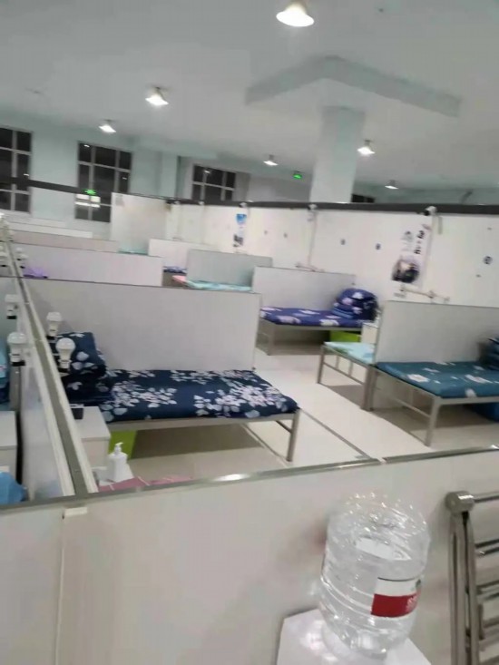 李路遥是吉林市九站方舱医院的志愿者,他现在每天的工作就是为住在方舱医院里的1000多位患者提供帮助。从他发给记者的照片中可以看到,方舱医院里每两张床是一个“小隔间”,由隔板隔开,相对保障隐私,床前有床头灯,矿泉水、水果供应充足,三餐肉蛋奶都能保障。