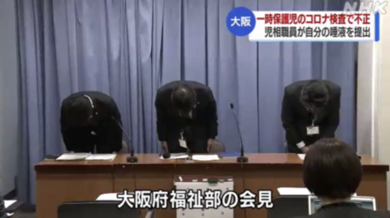 日本广播协会(NHK)报道,大阪府管理下的儿童相谈所对儿童进行新冠病毒检测时,工作人员用自己的唾液伪装成儿童的样本提交,就此,大阪府政府福祉部22日召开记者会公开道歉。