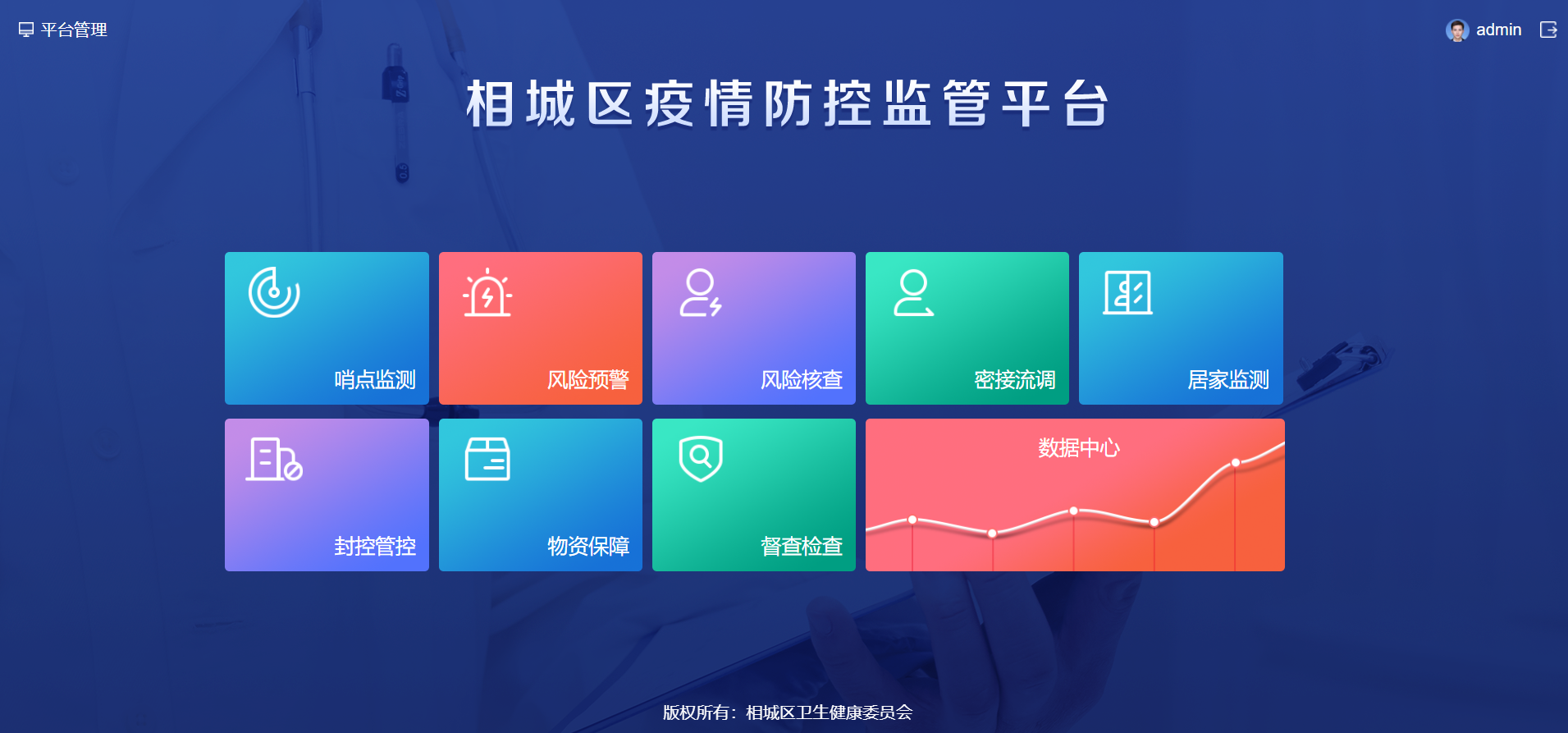 据了解,该平台计划建成哨点监测、风险预警、封控管控、数据中心、物资保障、督查检查等功能,可实现疫情防控中的数据监测、查看、统计和分析,有效破解外来人员、重点人员等判定不准、底数不清、管控不细的难题。
