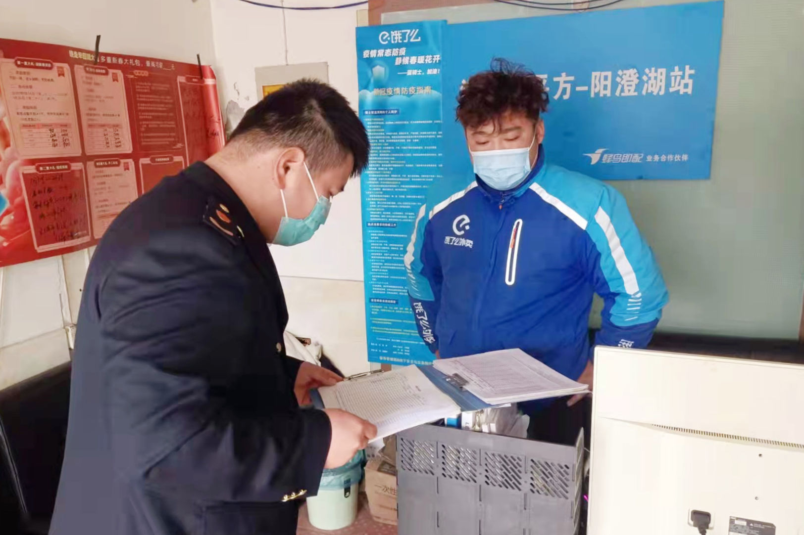 在大力推广无接触配送的同时,相城还建立外卖配送监督检查机制,对外卖配送疫情防控工作的落实情况进行督查。“请出示一下外卖配送车的消杀记录。”在相城区黄桥街道的一处叮咚买菜配送站,相城区市场监管局执法人员现场检查该站点疫情防控工作,查看当天配送点环境消毒、配送车消毒、工作人员“健康码”“行程卡”等情况,并要求站点持续落实疫情防控举措,筑牢外卖行业疫情防控的安全底线。