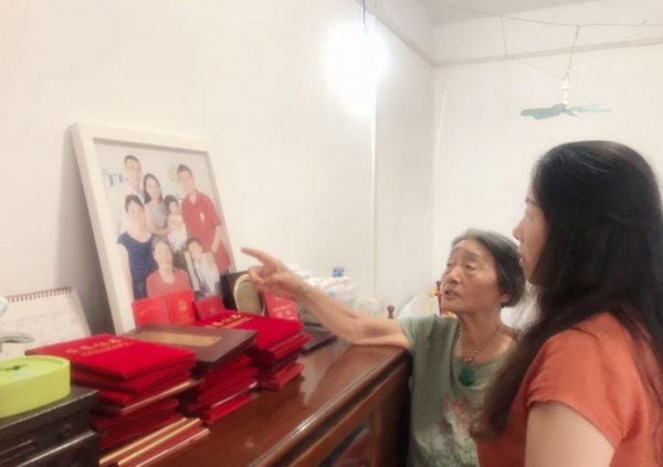 2021年夏天,凌曦与工作人员上门看望王素明奶奶,她自豪地介绍她的孙辈们。