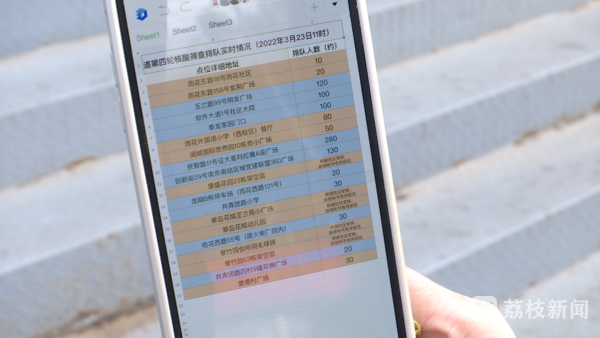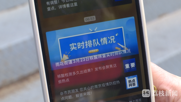 南京市雨花台区雨花街道能仁里社区网格员赵培介绍说:“每个核酸检测点的工作人员,每个小时都会报一次数据到街道,然后街道会进行一个汇总,发布到公众号上面。市民点点手机,就可以看到各个点的排队情况。”