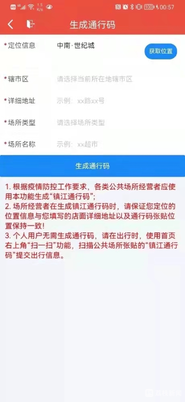 据了解,“镇江通行码”将成为镇江人员进入公共场所轨迹留痕开发的专有场所二维码。记者了解到,接下来,镇江全市公共场所均需生成、张贴“镇江通行码”,包括文化娱乐场所、文化交流场所、就诊与交通场所等。各类公共场所经营者可以通过镇合意APP首页“疫情防控”专栏中的“镇江通行码”功能,输入经营场所相关信息,生成该场所专有“镇江通行码”二维码,并在“镇江通行码”上自行补充场所疫情防控负责人姓名和手机号信息,确保“镇江通行码”上的场所地址准确规范。