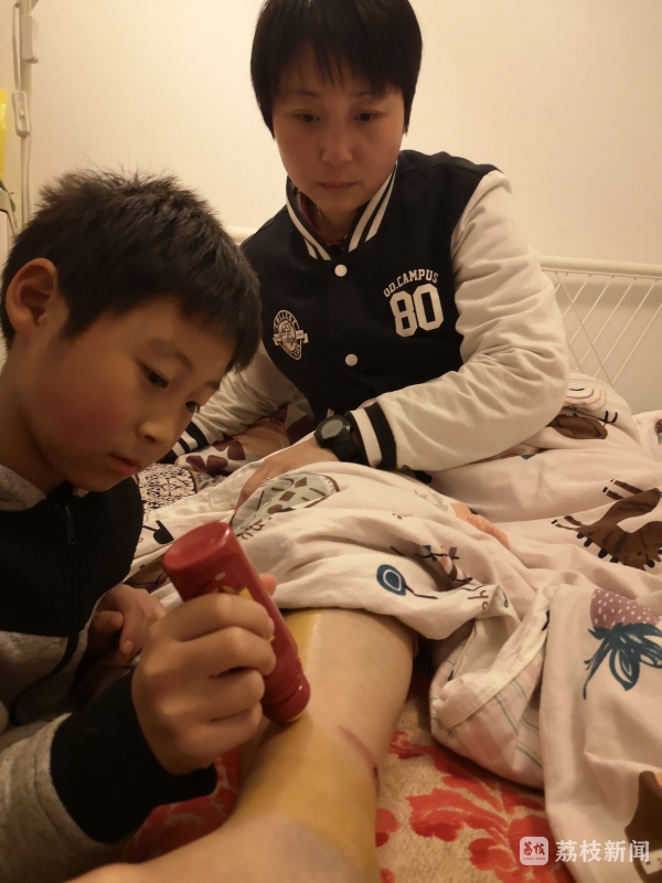 大儿子韦奕鸿是南京市光华东街小学四年级学生,小伙子说,现在他有两个任务,一是照顾妈妈,二是照看5岁的弟弟。“妈妈想下床,可以扶着我。每天晚上带弟弟洗澡、脱衣服,上床之后还会给弟弟讲故事,陪他睡觉。”