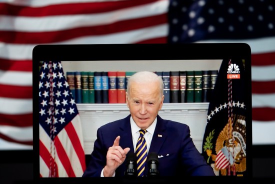 3月8日拍摄的视频画面显示,美国总统拜登在华盛顿白宫发表讲话。新华社记者刘杰摄