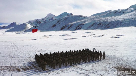 “不把主权守丢了,不把领土守小了!”在5300米的雪域高原上,新疆军区某合成团组织升国旗仪式,官兵们面对五星红旗庄严敬礼,用铮铮誓言向祖国表达最清澈的爱!(王新燃、宋坤、宗俊涛、曾庆宇、唐真、赵标)