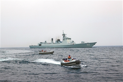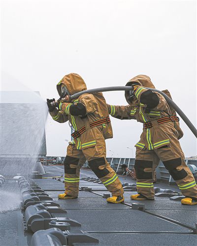 “开火!”编队指挥员抓住有利战机,果断下达命令,各舰炮弹齐发。霎时,海天之间炮火纷飞,“敌”舰被精准摧毁。随后,编队各舰紧急支援,吊放小艇搭载官兵和装备,火速前往受损舰艇协助救援。