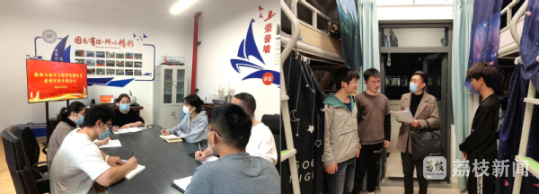 连夜送发热的学生去医院、通宵研讨防控预案、下宿舍和同学谈心……从那天起, 辅导员与广大学子吃在一起、住在一起、战斗在一起。他们是师长也是朋友,一次又一次进宿舍谈心、统计基础数据、协助做好流调、组织核酸检测、落实健康监测、督查宿舍卫生、开展心理疏导、检查网课、解决难题。特别是全体人员通宵达旦为3月12日学生教师资格证考试保驾护航,让同学们倍感暖心。连日的高负荷状态、强大的工作压力,辅导员始终保持着良好的工作状态。他们说:“疫情防控,我们始终与学生在一起”。