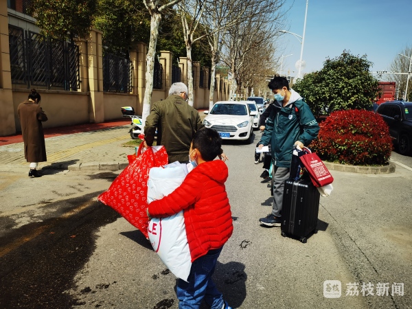 中午一点多,南京市田家炳高级中学校门口,高三学生在家人的陪伴下陆续返校,看着孩子带着行李,走进学校,不少家长都长舒了一口气。市民王女士说,通知返校复学,全家都特别开心。“中午11点多通知的,孩子还在上网课,他也知道。准备老师说的行程卡、苏康码,还有核酸检测证明都交给老师了。返校复学我们就安心了。”