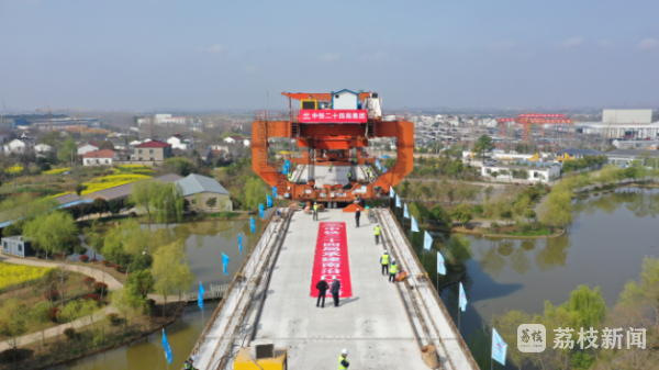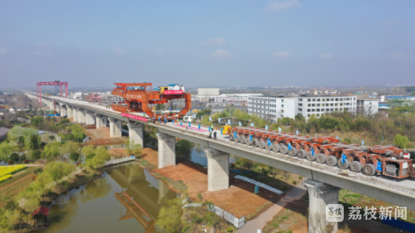 南沿江城际铁路中铁二十四局项目部有关负责人表示,南沿江铁路2标句容段架梁坡度最大为16.7‰,箱梁最远运距17公里,运梁车往返一趟需8个小时,架梁期间,累计上跨国道、省道、河流等共计15处,为确保节点工期,项目部春节期间不停工,于2月21日完成全部箱梁预制任务,并组织两个架梁班组轮班作业,确保安全优质高效完成架梁任务。