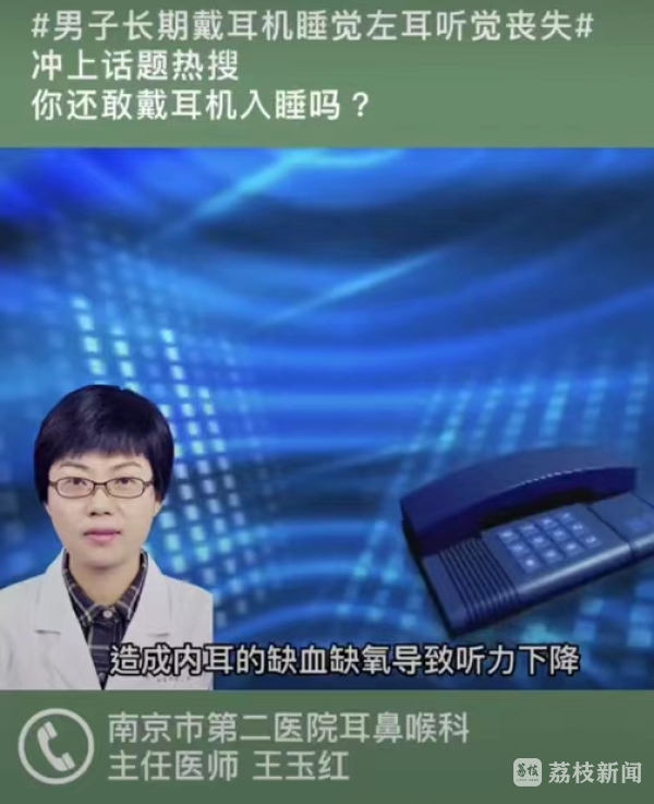 “因为这个习惯导致听力健康受到损害的人不在少数。”3月25日,南京市第二医院耳鼻喉科副主任、主任医师王玉红告诉记者,前不久,30岁出头的王女士(化姓)就曾因为连续十多天的右耳听力下降前来就诊。“检查后发现患者的右耳听力在60分贝左右,她自己也没重视,其实已经属于中重度的感音神经性听力下降。仔细询问后发现,她也是有戴耳机听歌睡觉的习惯。”