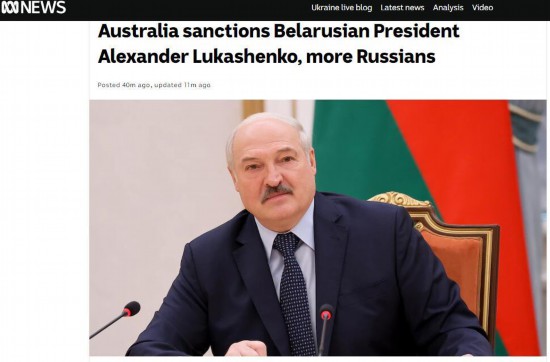 澳大利亚广播公司(ABC)25日最新消息称,澳联邦政府宣布对白俄罗斯总统卢卡申科及其家人以及另外22名俄罗斯人实施制裁。